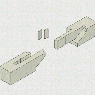 凸出來的榫頭和凹進(jìn)去的卯眼扣在一起,兩塊木頭就會緊緊地相握,不再分離,從此木頭就有了生命。